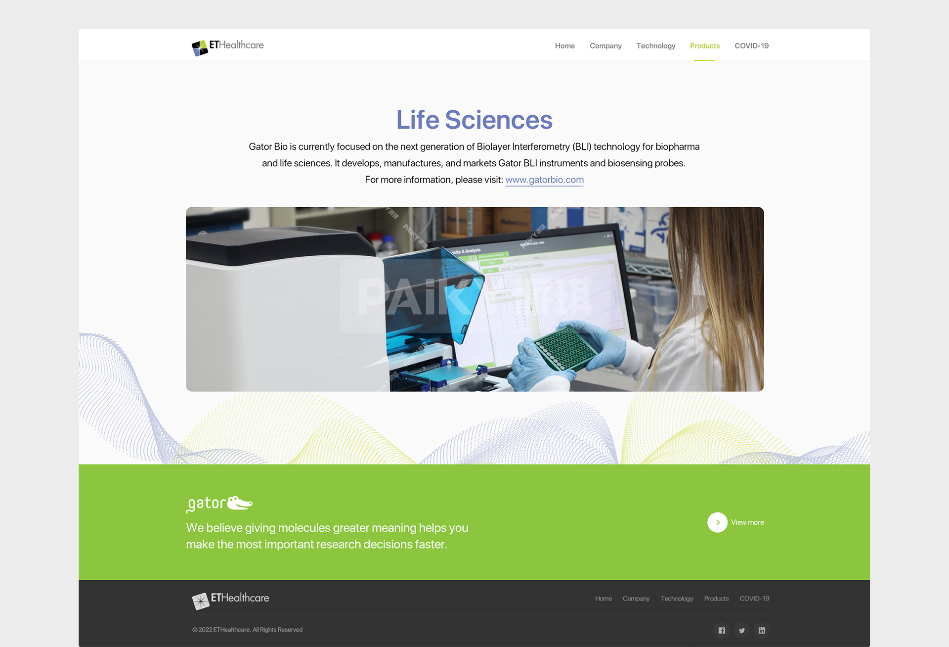 专注于生物制药和生命科学的下一代生物层干涉测量(BLI)技术。它开发、制造和销售Gator BLI仪器和生物传感探针。