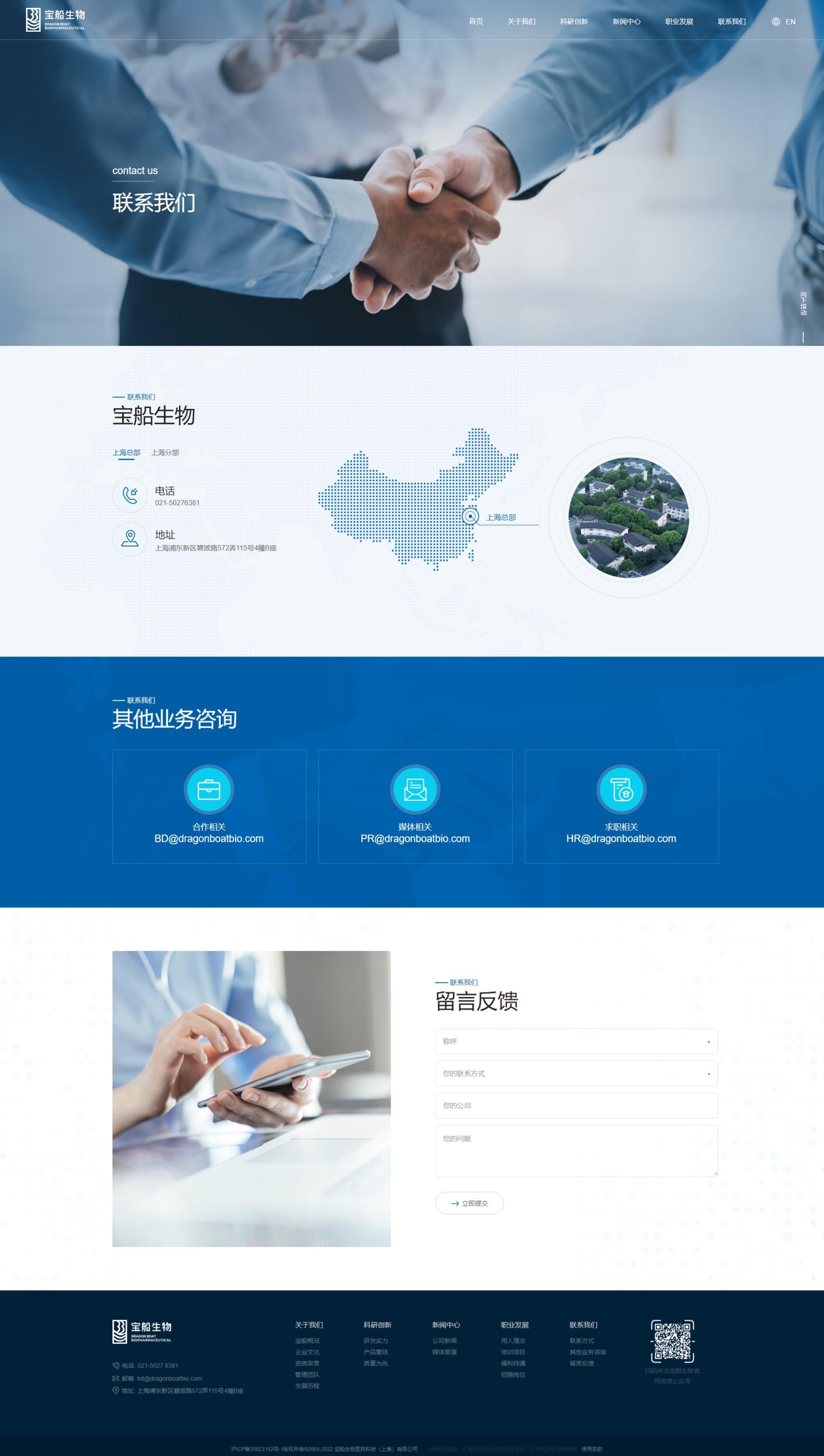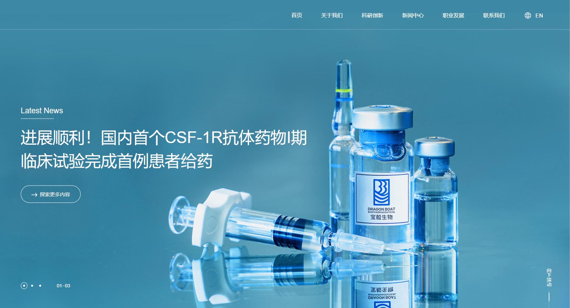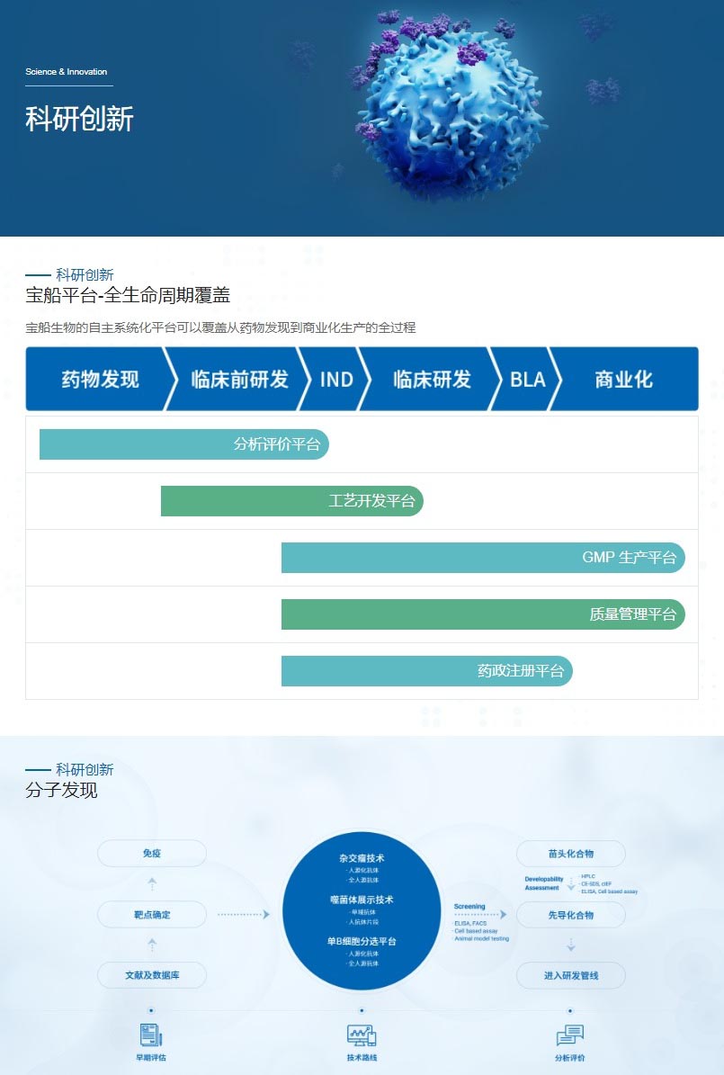 宝船生物制药网站风格定位为“专业创新,温馨信赖”。设计融合深蓝色调,彰显专业与稳重;现代布局与创意元素展现企业前沿创新力。温馨关怀的内容板块传递对患者健康的深切重视,增强品牌亲和力。