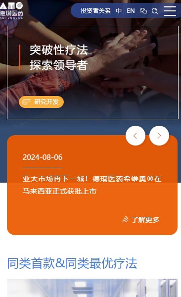 德琪医药官网全力为全球科研人员、患者及合作伙伴打造专业高效体验。视觉上,以简洁风格与科技色调营造严谨创新氛围,布局清晰助用户快速定位信息。内容丰富且实时更新,涵盖前沿成果与科普知识,满足多样需求。通过便捷导航与快速响应,保障用户浏览流畅。同时,官网注重与用户深度沟通,分享研发故事传递正能量,针对不同群体提供专业咨询与解决方案。整体从多维度优化,打造出兼具专业前沿与人文关怀的平台,彰显其在生物制药领域的强大实力与服务理念 。
